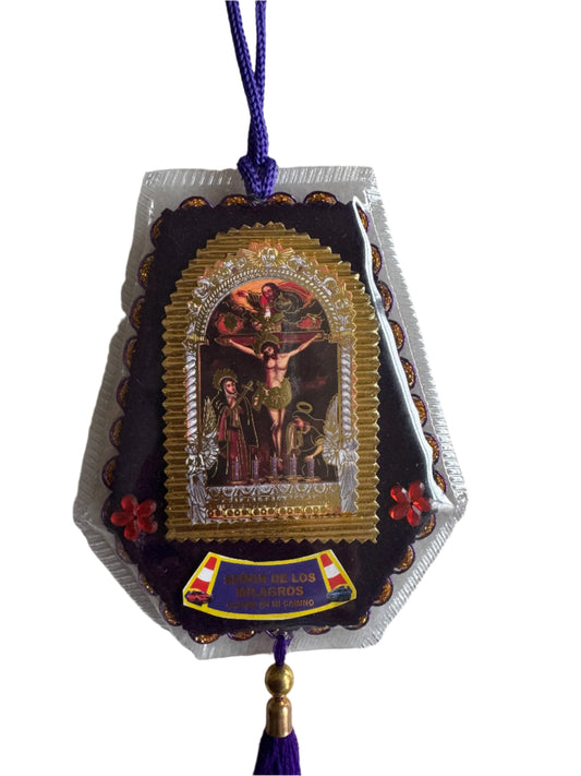 Peruvian Detente Señor de los Milagros Car Hanging Catholic Religious Protection Charm 5"x4"