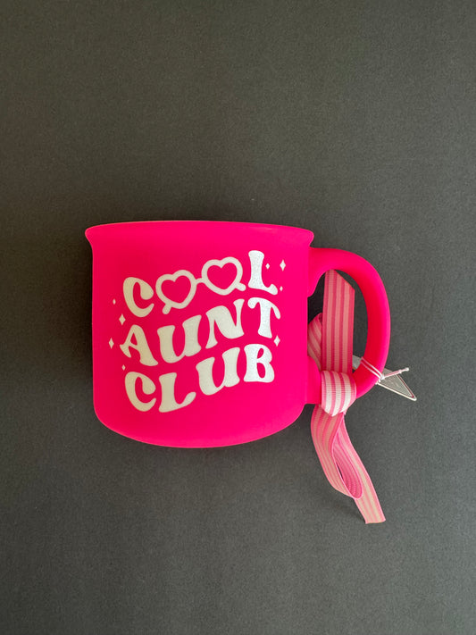 Cool Aunt Club Pink Coffee Mug – Fun Gift for Aunts, Ceramic Cup with Heart Glasses Design