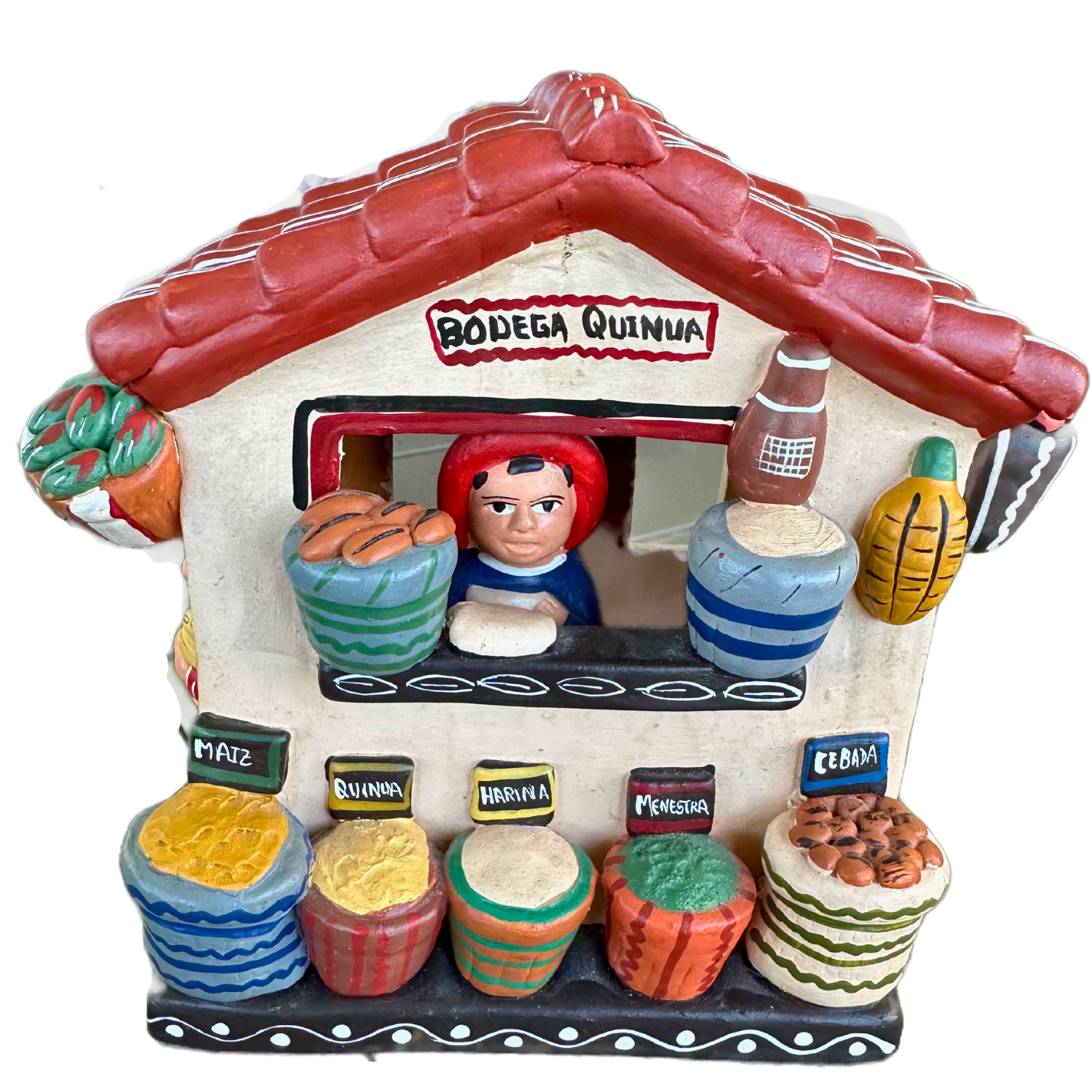 Celebra la belleza del arte peruano con esta estatuilla de cerámica pintada a mano de Quinua, Ayacucho. Con medidas de 5 1/2" x 5", esta escultura representa con gran detalle una iglesia andina, símbolo del arte popular de la región. Hecha con técnicas tradicionales y pintada por artesanos expertos, es ideal como pieza decorativa o regalo cultural. Una muestra auténtica del rico patrimonio del Perú.