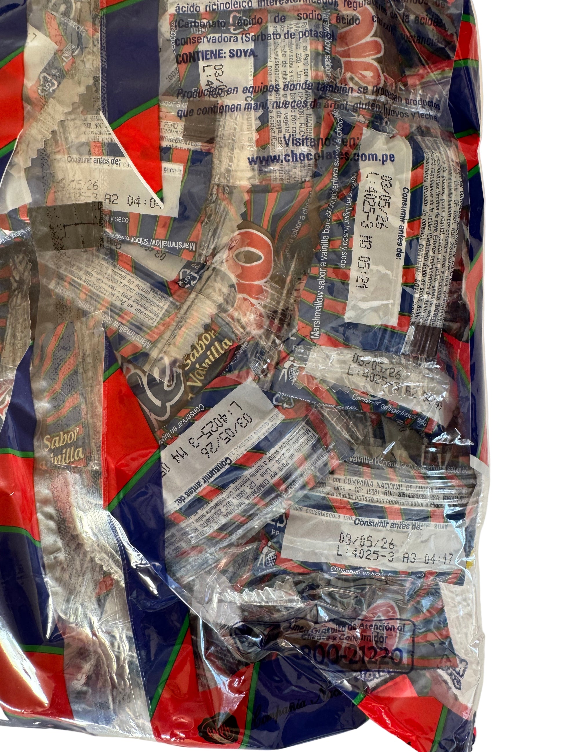 Disfruta los deliciosos Chocolates Mashmelos Ole Ole sabor a vainilla, un clásico dulce peruano. Cada caja contiene 50 unidades ideales para compartir, regalar o revender. Suave malvavisco cubierto de chocolate con el auténtico sabor que encanta a grandes y chicos