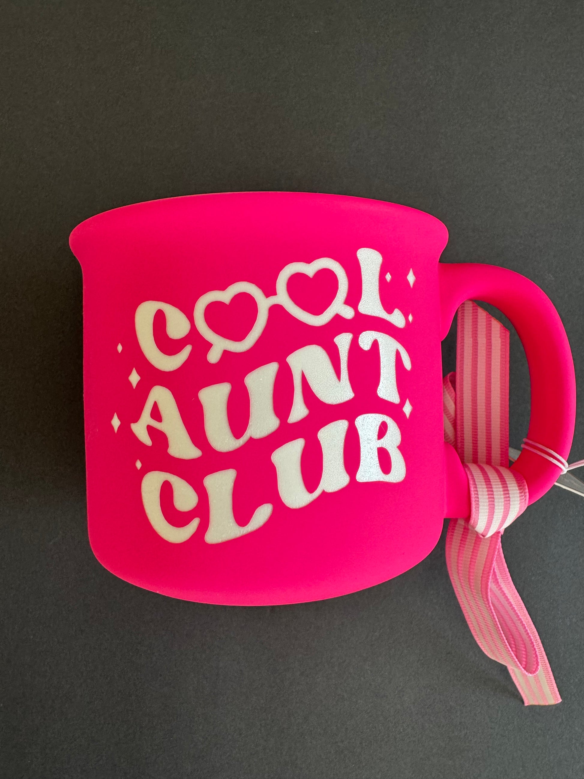 Cool Aunt Club Pink Coffee Mug – Fun Gift for Aunts, Ceramic Cup with Heart Glasses Design