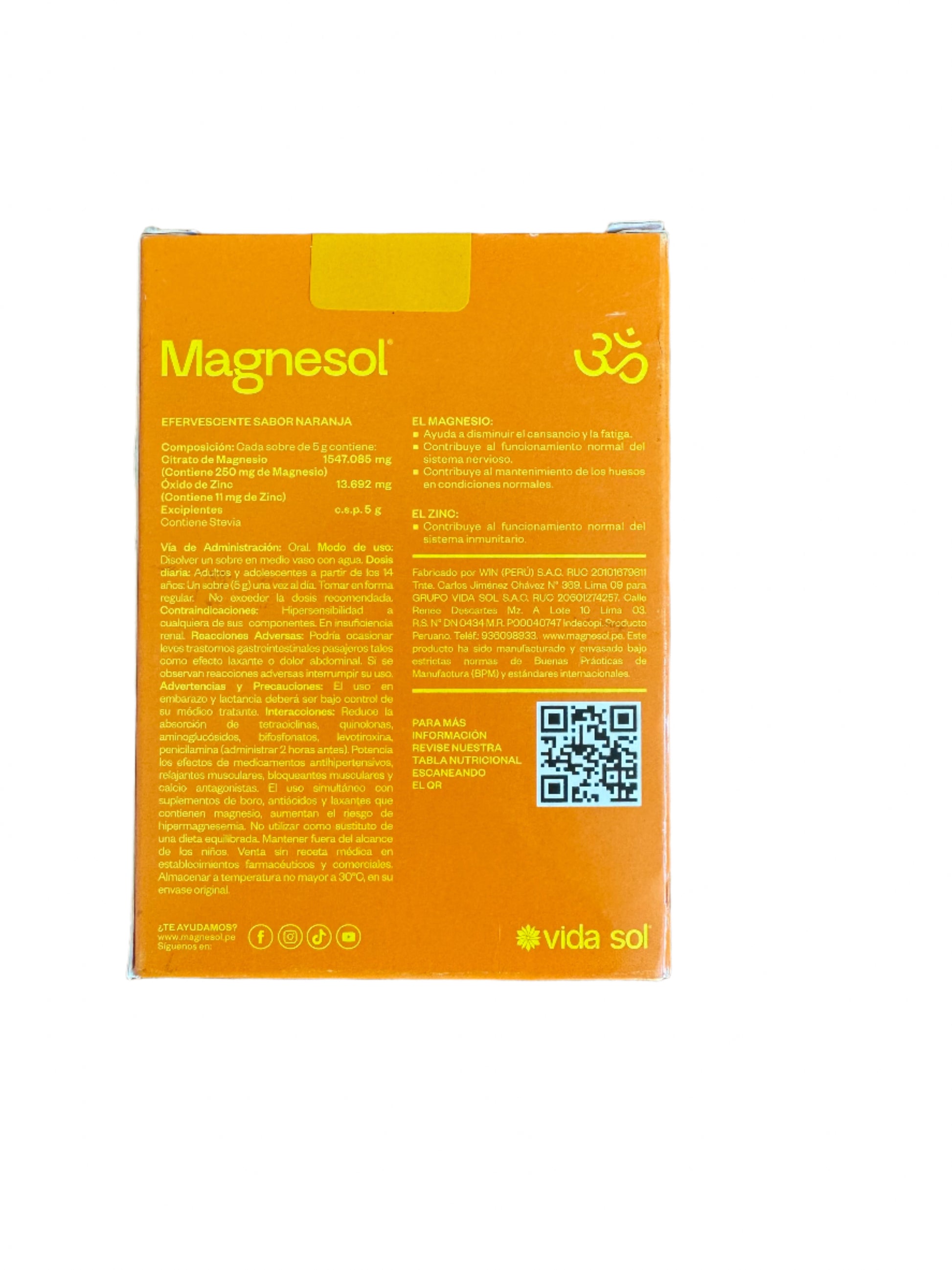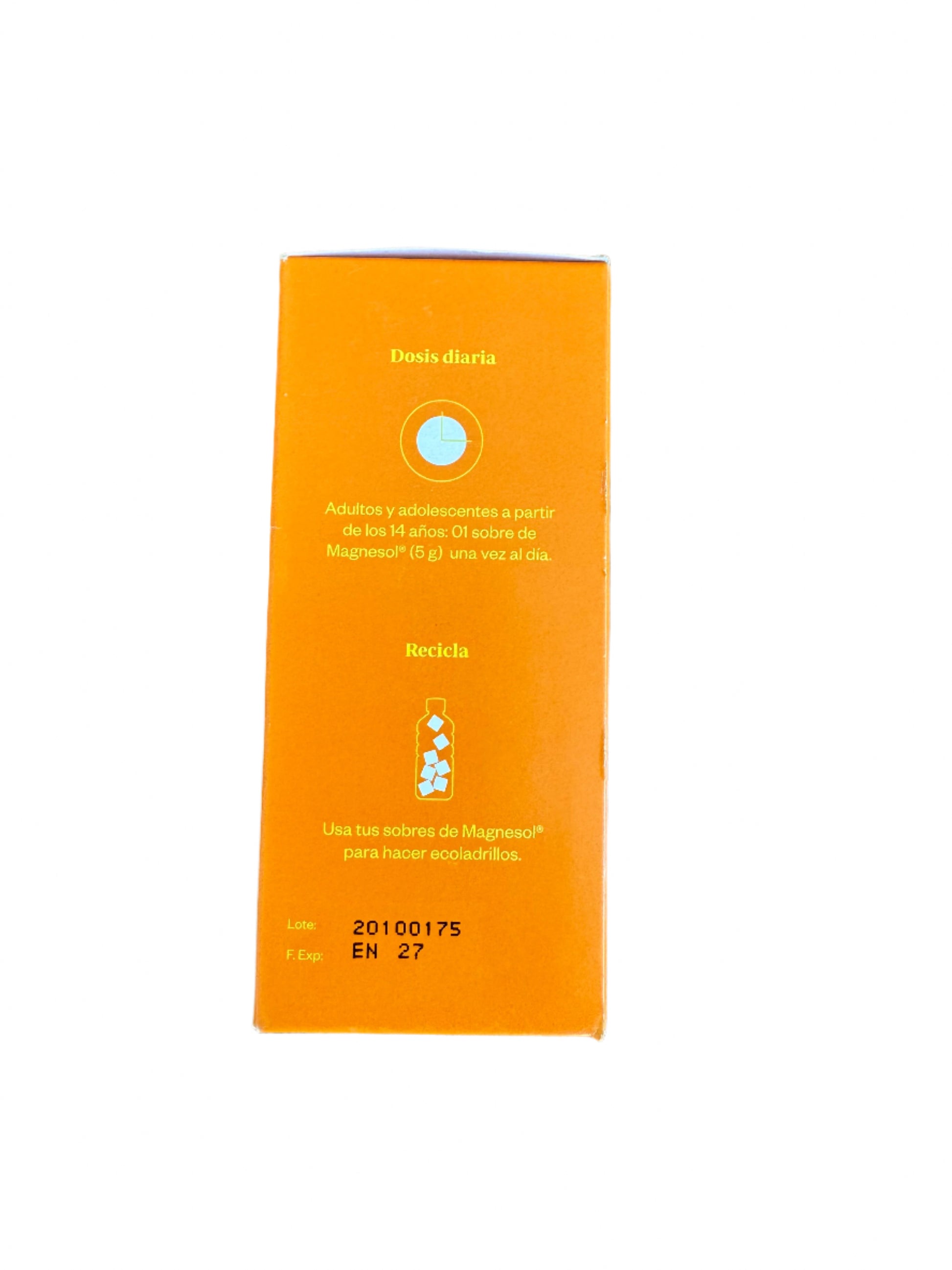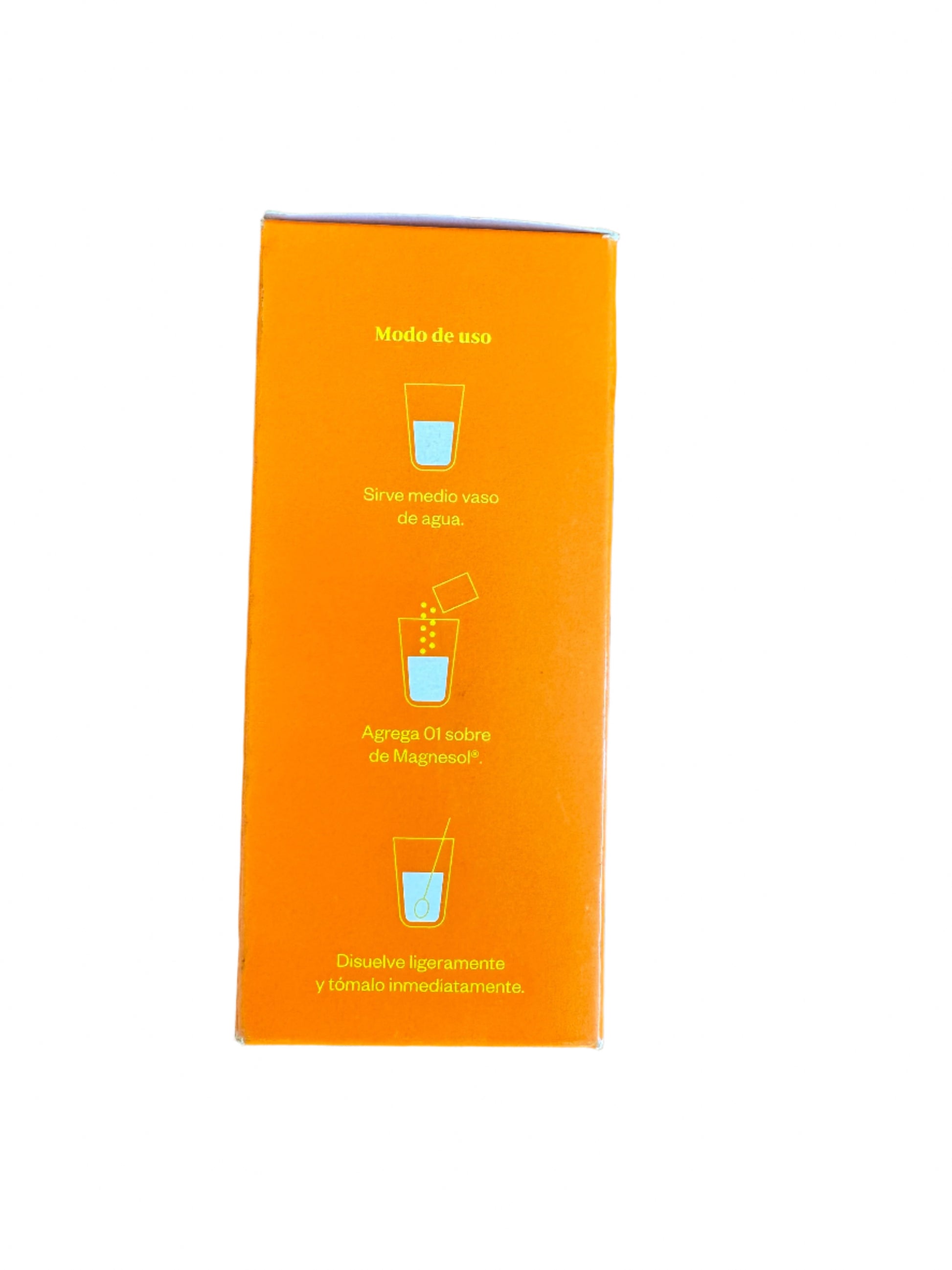 Disolver un sobre de Magnesol Naranja en un vaso de agua. Tomar una vez al día o según indicación de su médico.