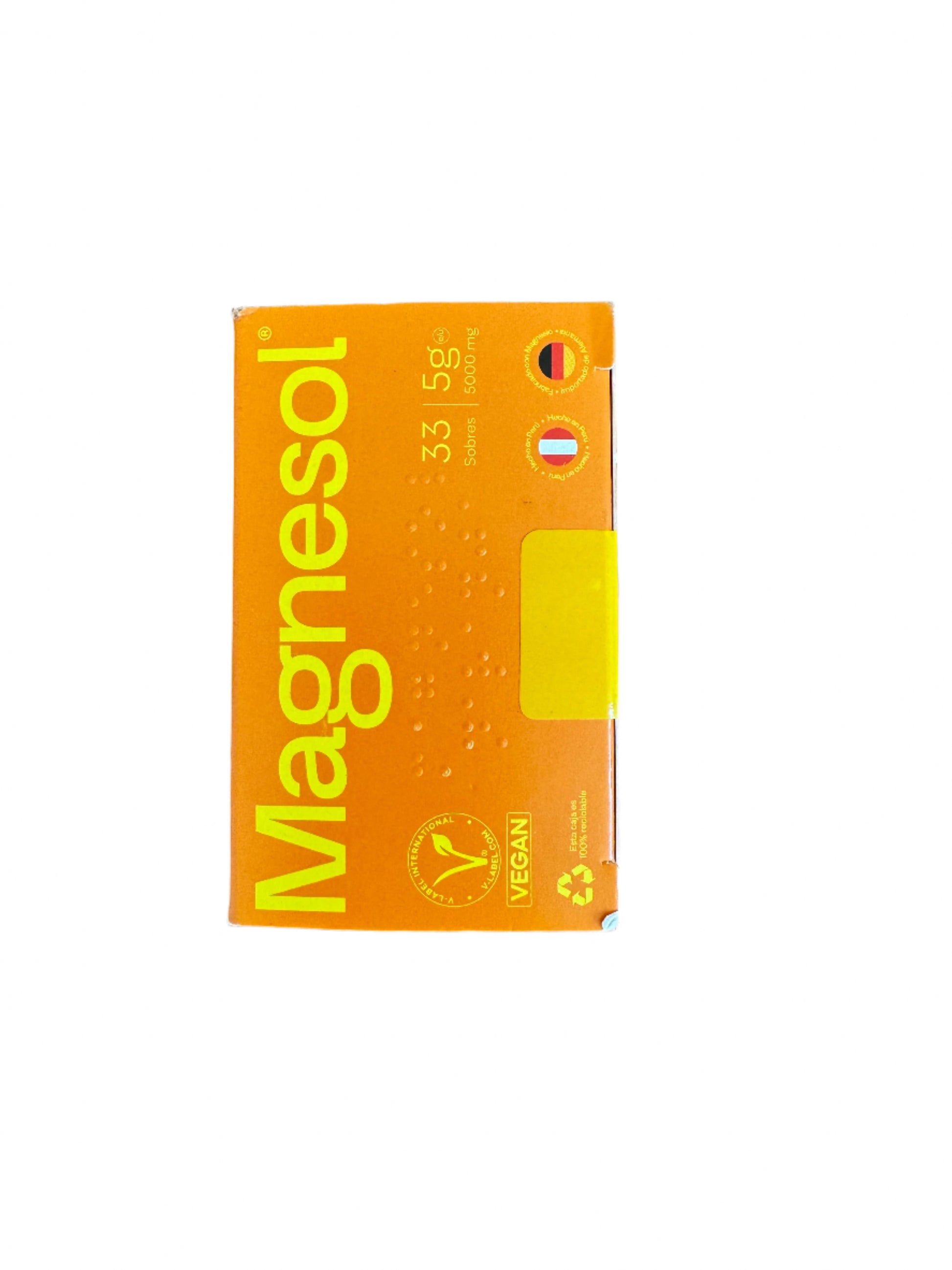 Boost your energy and well-being with Magnesol Naranja, a premium magnesium supplement that supports muscle relaxation, energy production, and overall wellness. Each box contains 33 convenient 5g sachets with a delicious natural orange flavor.