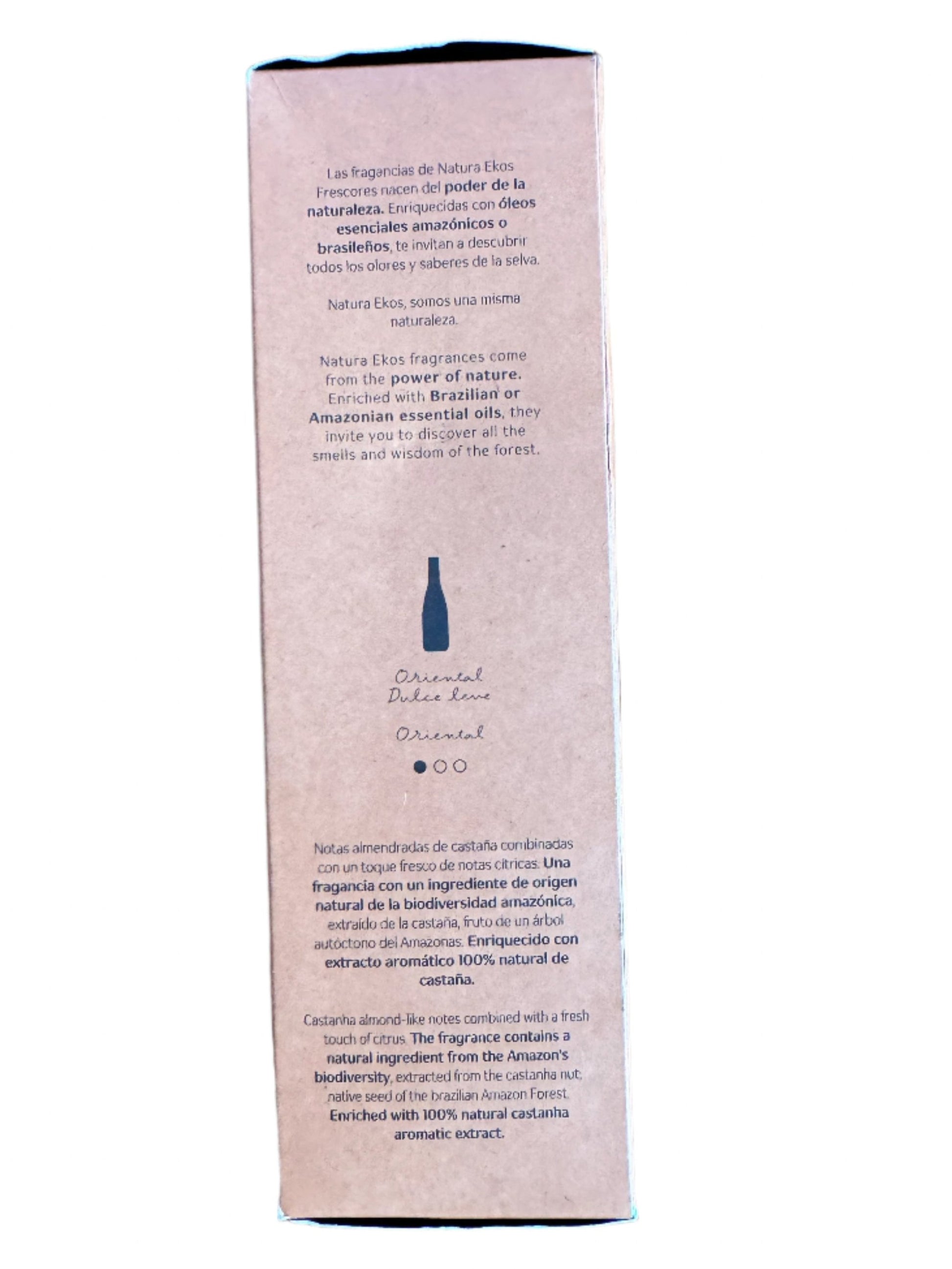 Fragancia fresca unisex con esencia de castaña. Natura Ekos Frescor Castanha Eau de Toilette 150 ml es vegana, cruelty free y ideal para uso diario.