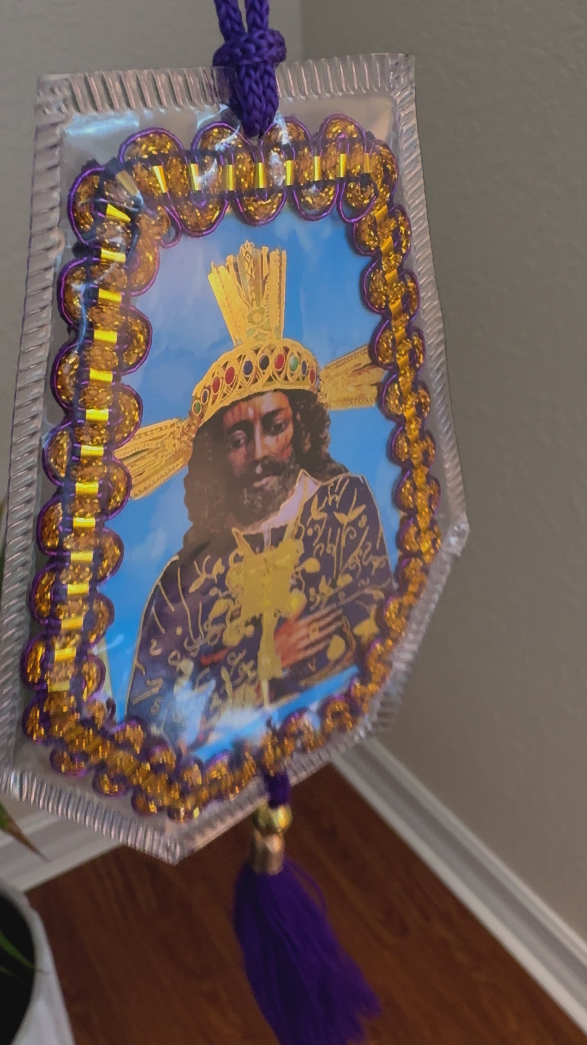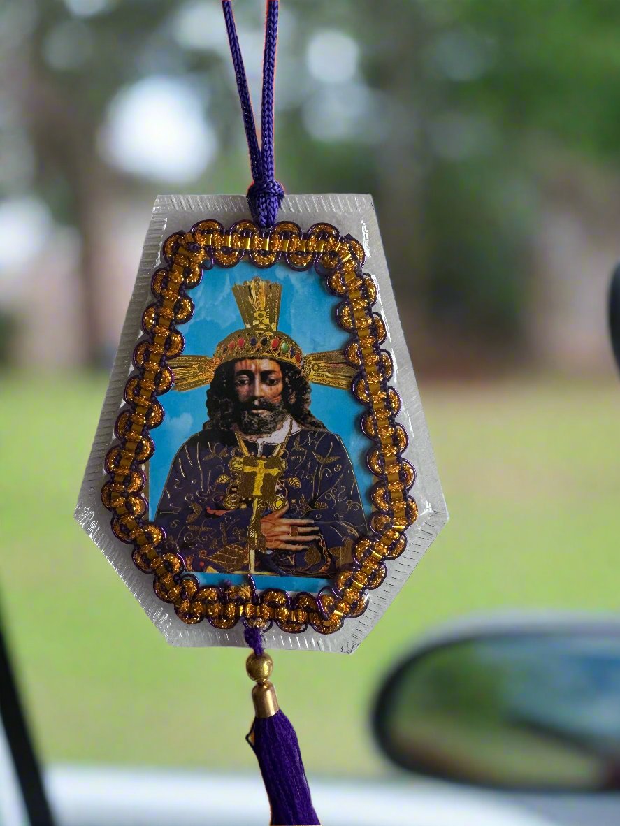 Peruvian Detente Señor de los Milagros religious car hanging 5"x 4"