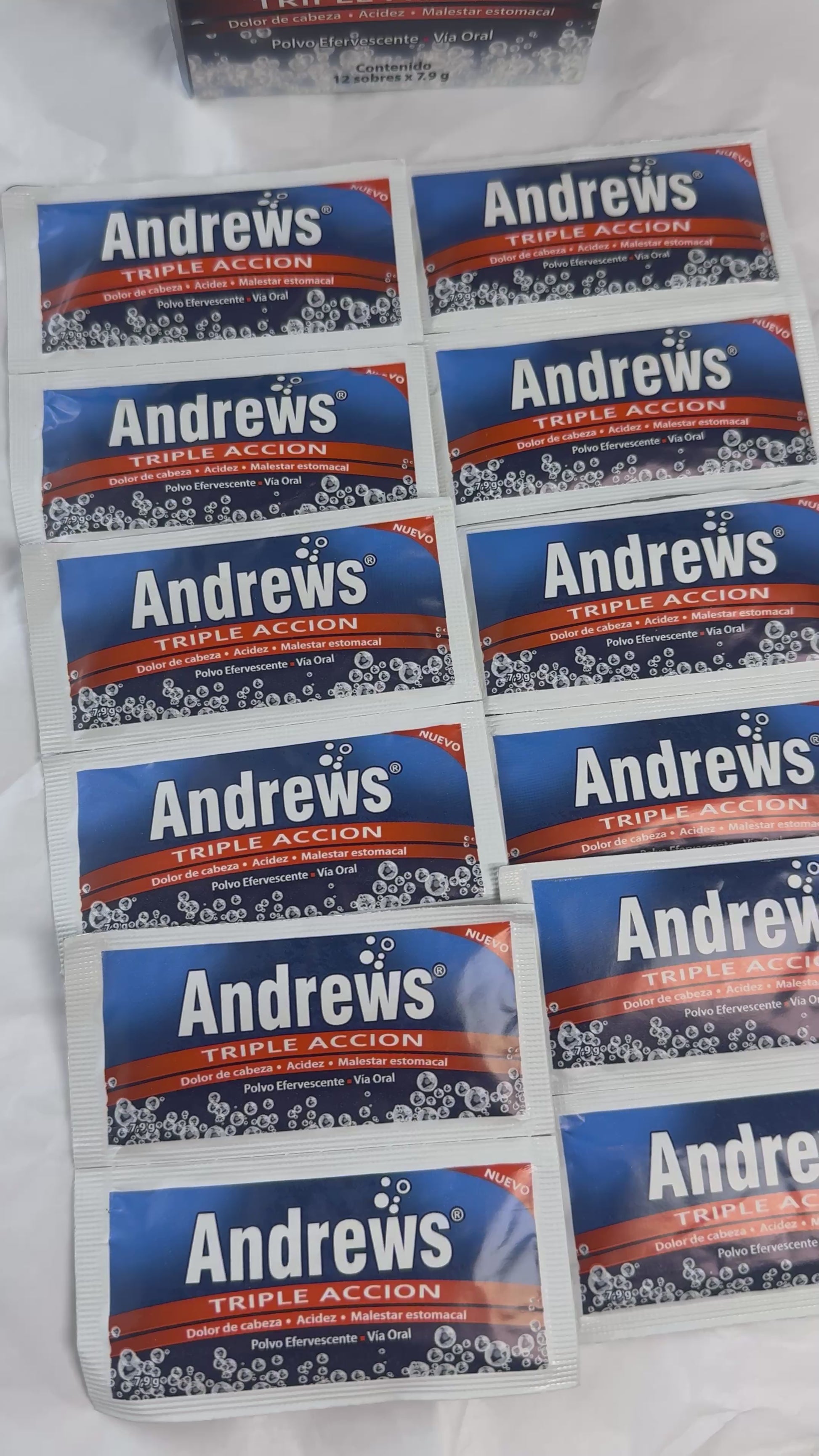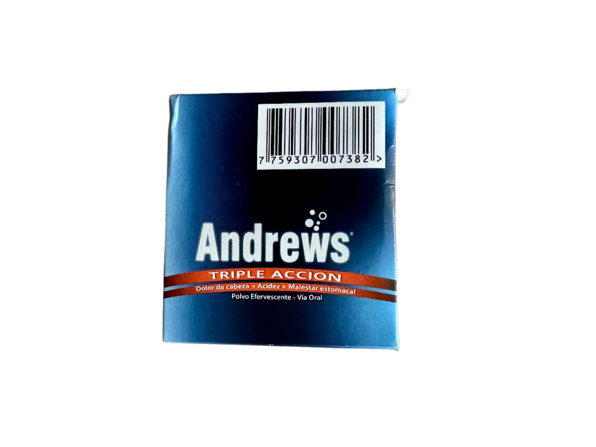 Alivia rápidamente la acidez, indigestión y malestar estomacal con Sal de Andrews Triple Acción Azul. Este antiácido confiable ayuda a calmar el estómago y favorece la digestión saludable. Cada caja contiene 12 unidades prácticas, ideales para el hogar o para llevar. Perfecto para quienes buscan un alivio rápido y confiable de las molestias digestivas. Un producto reconocido mundialmente por su calidad y eficacia.