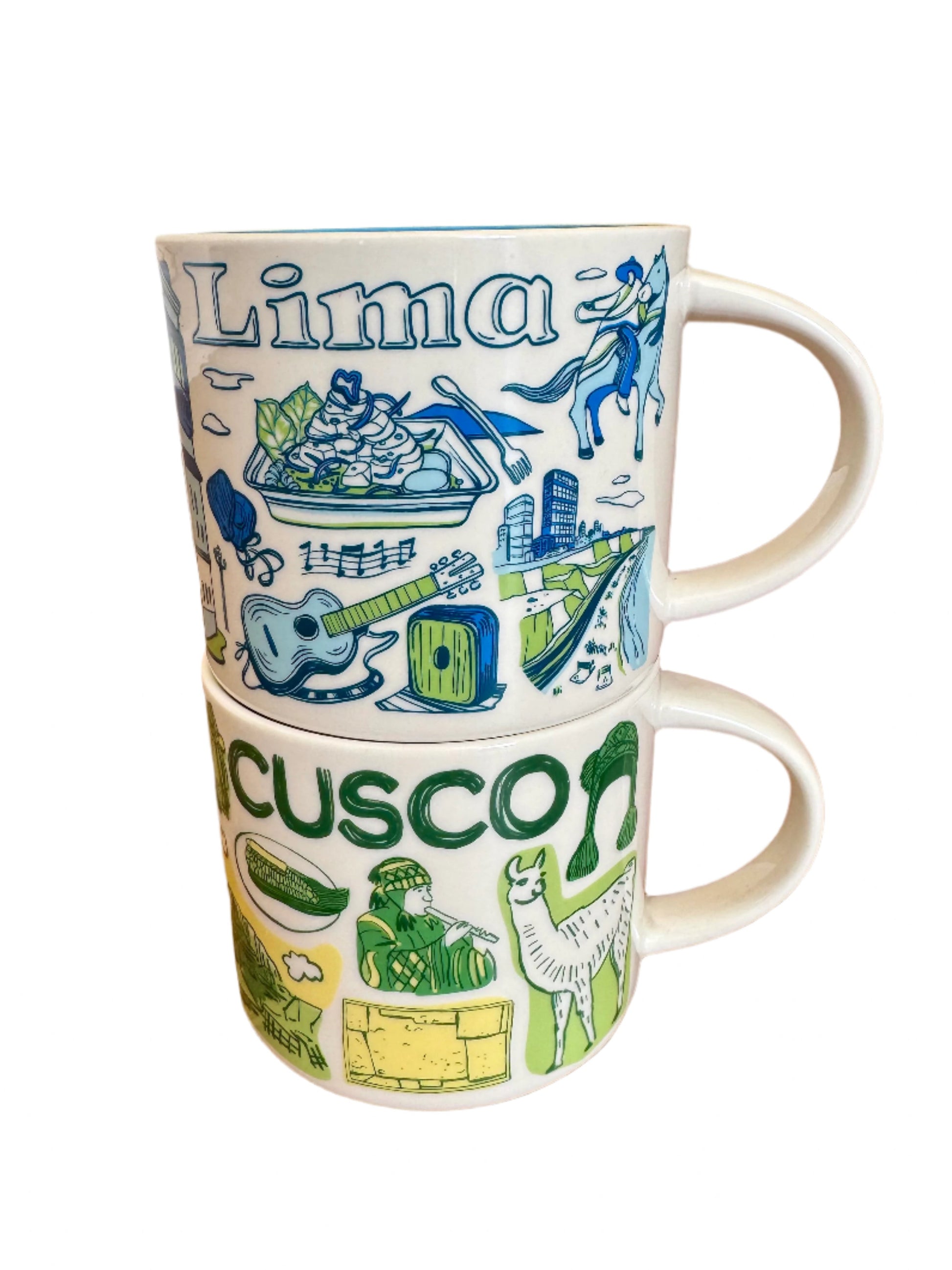Celebrate Peruvian culture with this collectible Starbucks Been There Series Mug Set featuring Cusco and Lima. Each 14 oz ceramic mug showcases iconic landmarks and vibrant designs inspired by Peru’s rich history and heritage. A must-have for Starbucks collectors or as a unique gift from Peru — brand new in box.