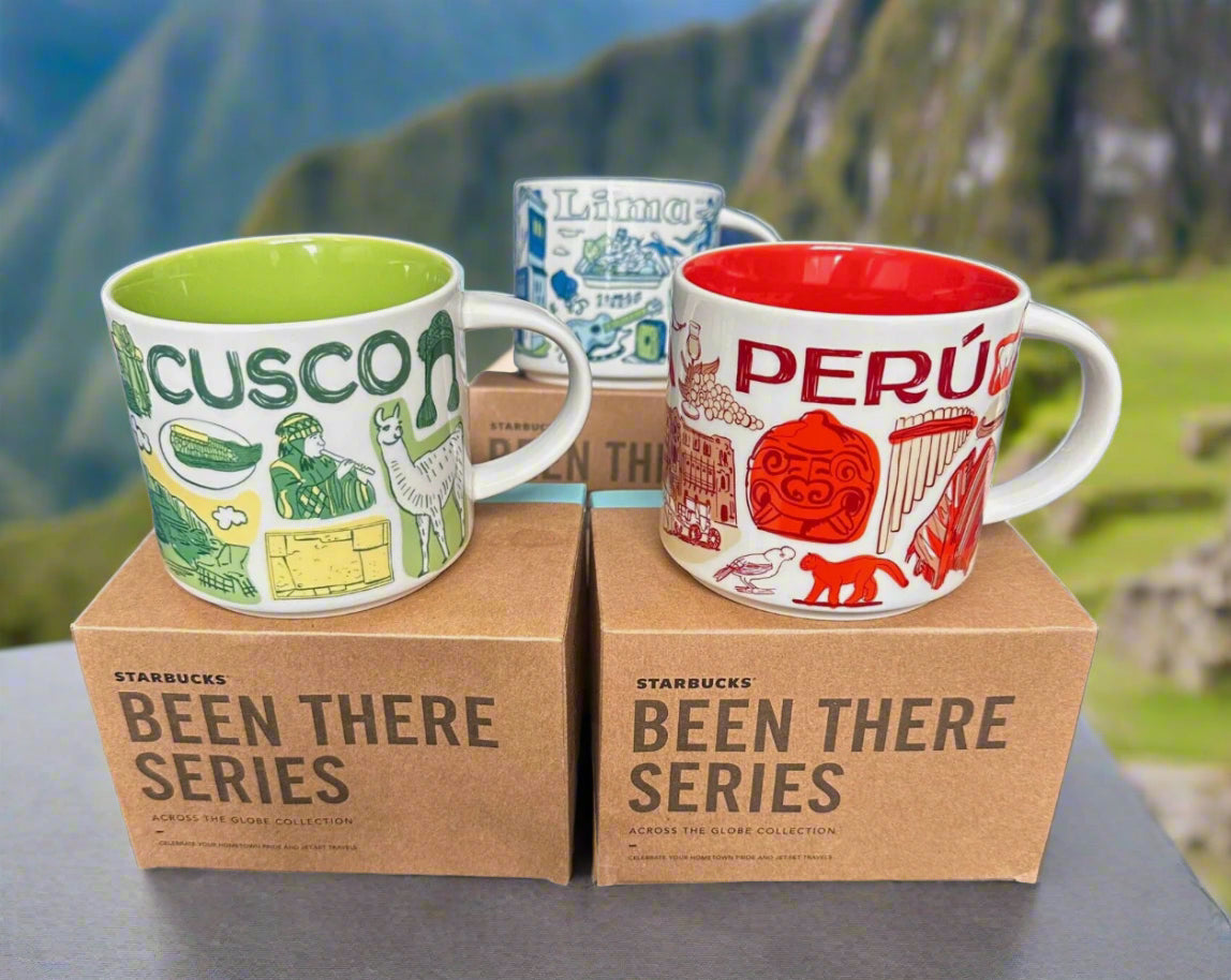 Vive la cultura vibrante del Perú con este set exclusivo de 3 tazas Starbucks de la colección Been There, con diseños de Perú, Cusco y Lima. Cada taza de cerámica de 14 oz viene nueva en caja y presenta ilustraciones coloridas inspiradas en las ciudades y tradiciones más emblemáticas del país. Ideal para amantes del café, coleccionistas o como regalo especial. Con tu compra, recibe de regalo té y galletas peruanas. ¡Stock limitado!